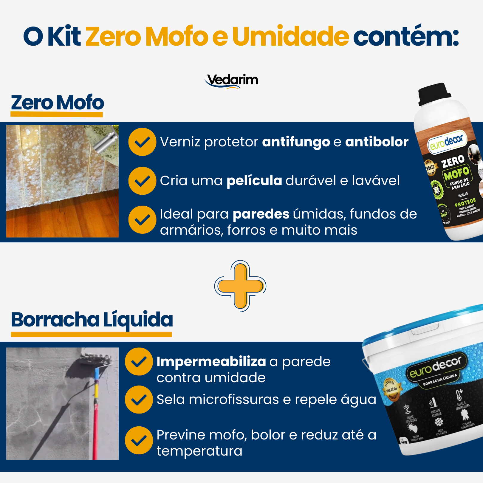 Kit ZERO MOFO E UMIDADE – Borracha Líquida + Zero Mofo | Parede livre infiltração e bolor