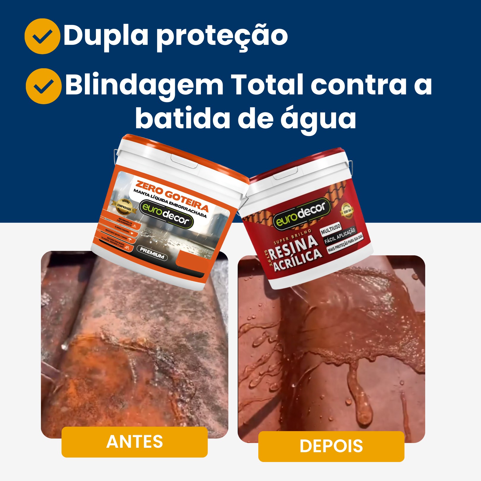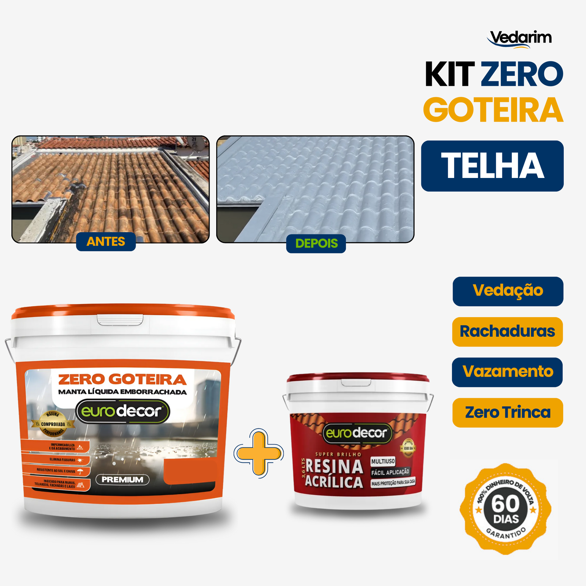 Kit ZERO GOTEIRA – Manta Líquida Emborrachada + Resina Acrílica | Telhado 100% Livre de Goteiras