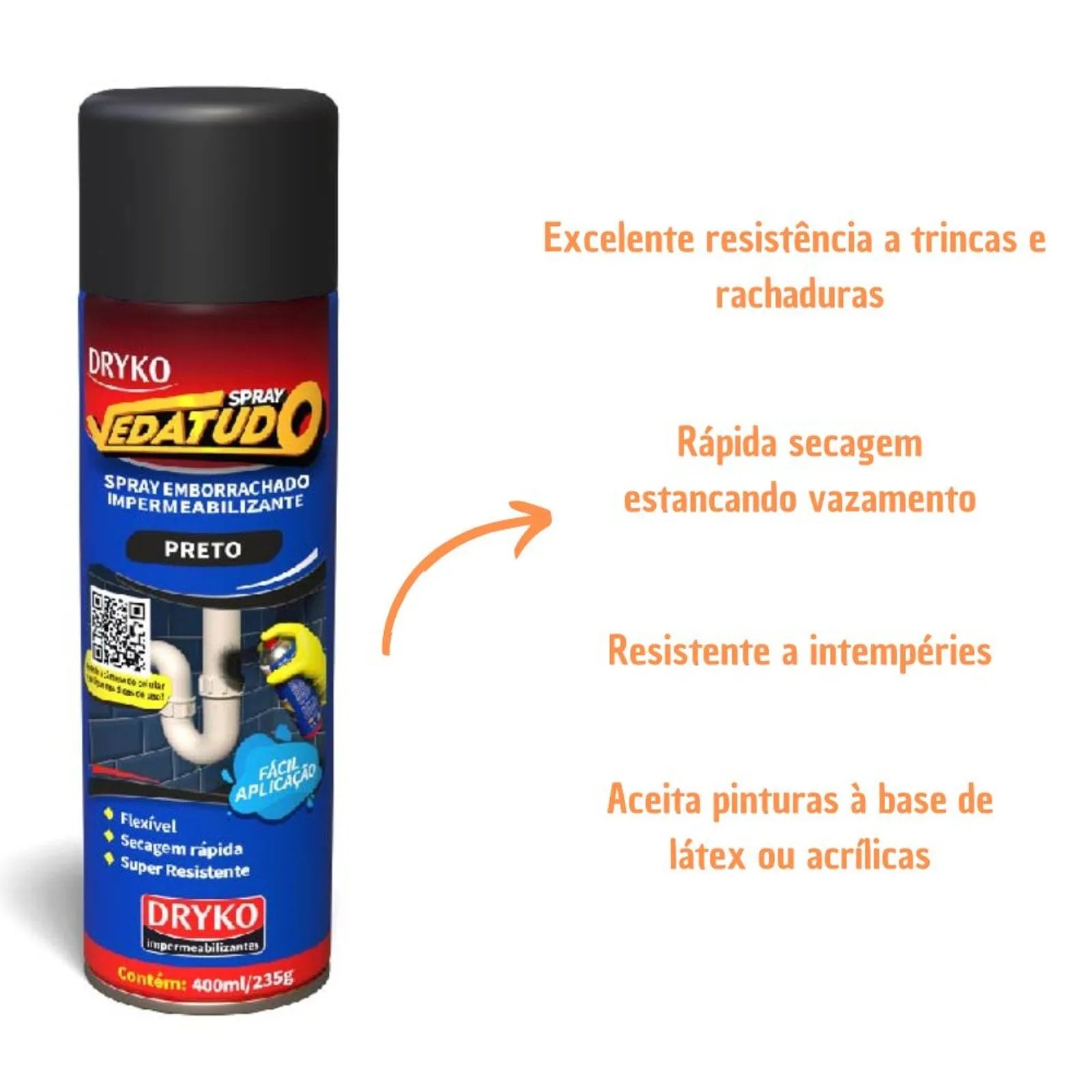 Spray Impermeabilizante Vedatudo Preto 400ml Dryko